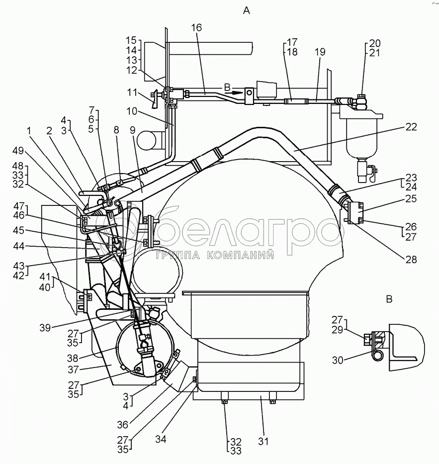 Каталог запасных частей к технике: ЧТЗ Бульдозер Б12. Установка подогревателя ПЖД-30Е