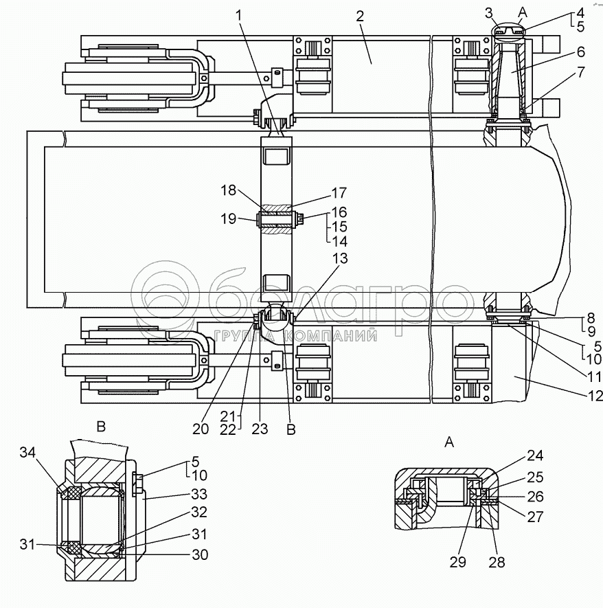 Каталог запасных частей к технике: ЧТЗ Бульдозер Б12. Установка тележек