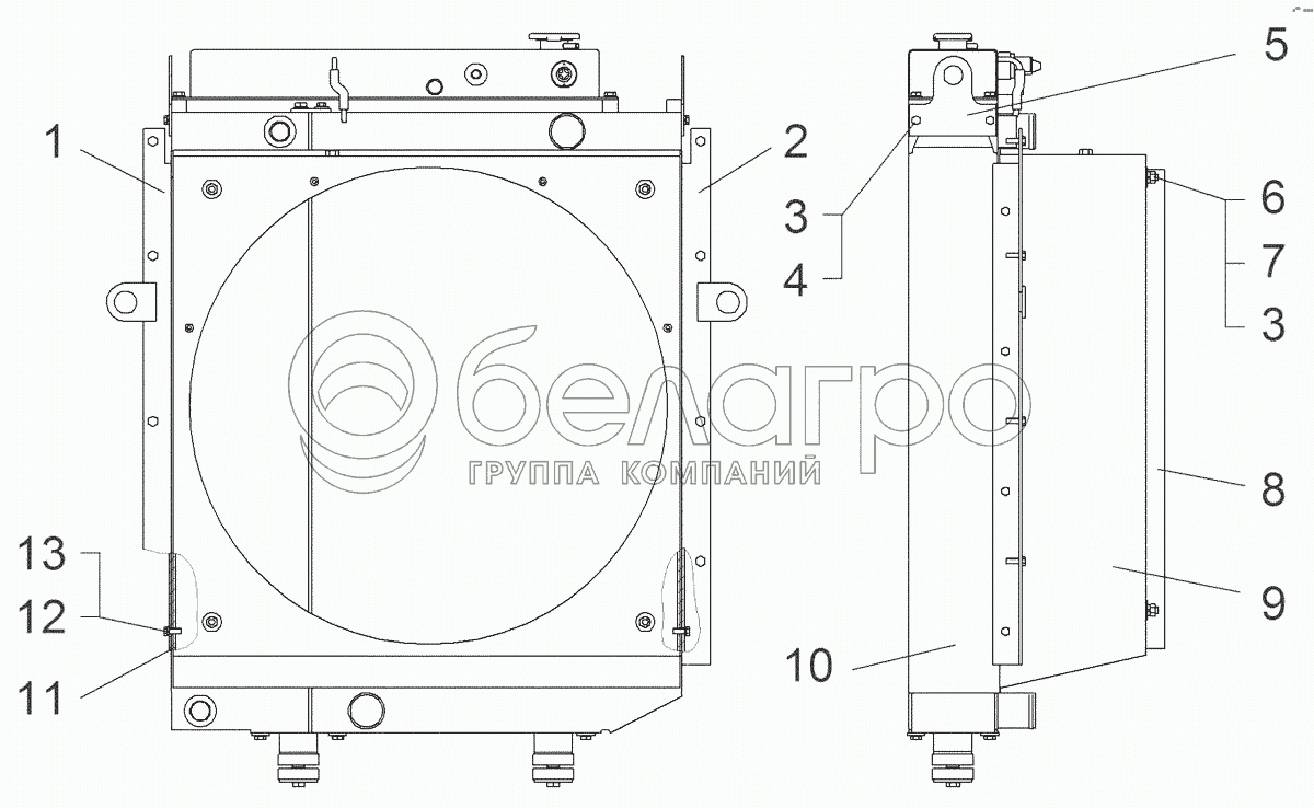 Каталог запасных частей к технике: ЧТЗ Бульдозер Б14. Блок радиаторов 114-08-1СП