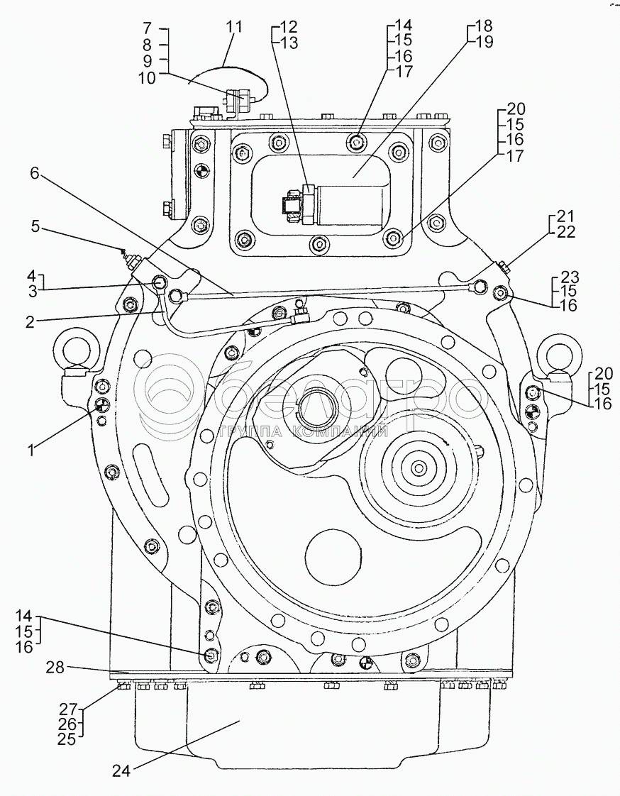 Каталог запасных частей к технике: ЧТЗ Бульдозер Б14. Коробка передач, детали крепления