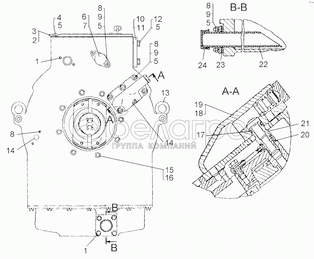 Каталог запасных частей к технике: ЧТЗ Бульдозер Б14. Коробка передач, детали крепления