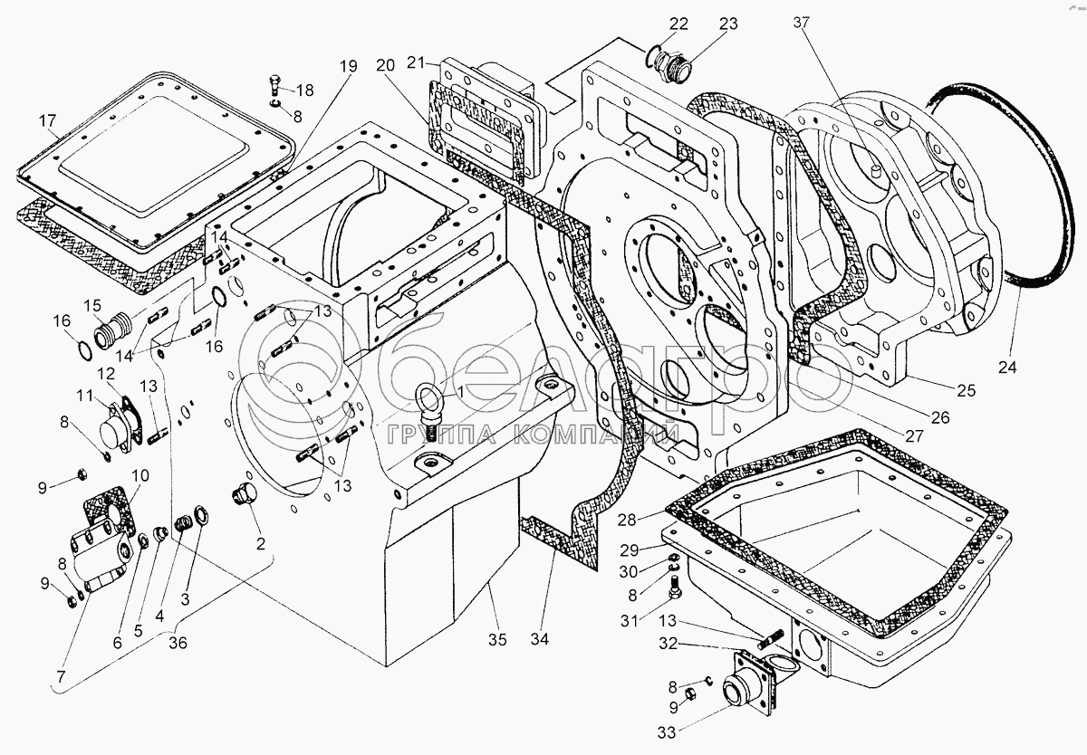 Каталог запасных частей к технике: ЧТЗ Бульдозер Б14. Корпус, проставка, клапан