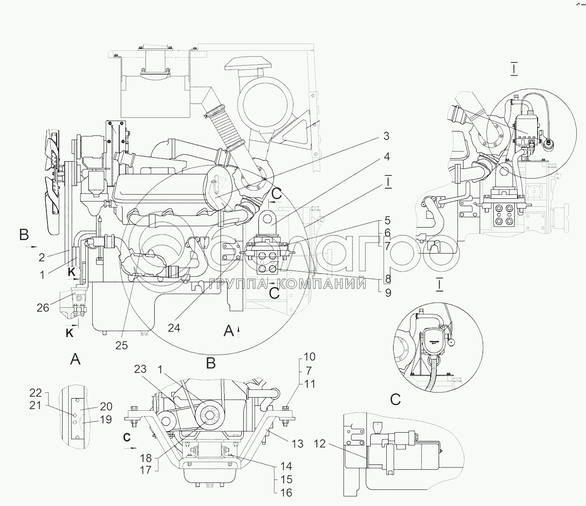 Каталог запасных частей к технике: ЧТЗ Бульдозер Б14. Установка двигателя