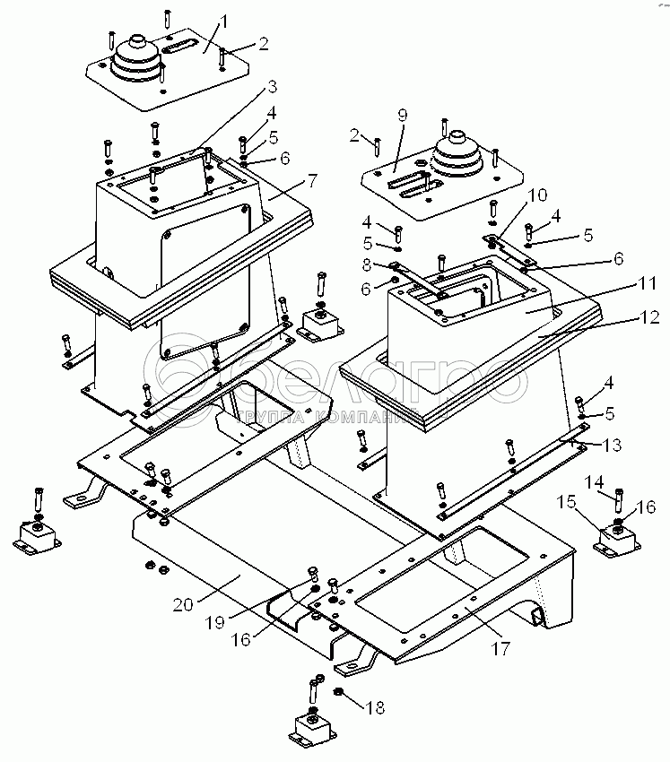 Каталог запасных частей к технике: ЧТЗ Бульдозер Б14. Установка колонок управления