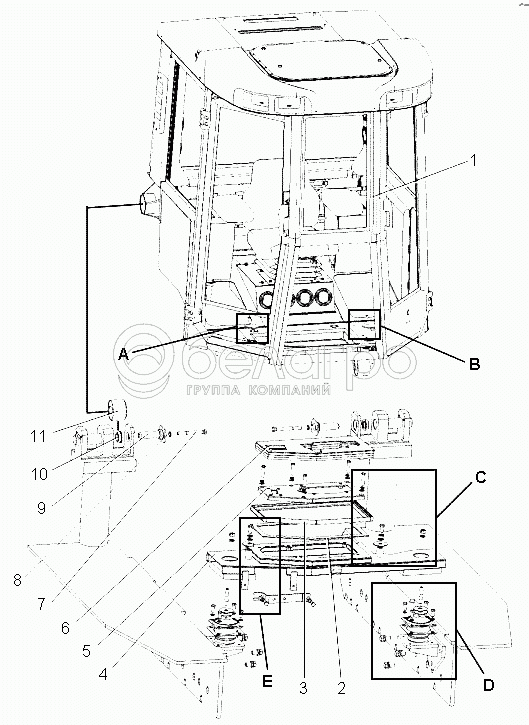 Каталог запасных частей к технике: ЧТЗ Бульдозер Б14. Установка модуля рабочего места