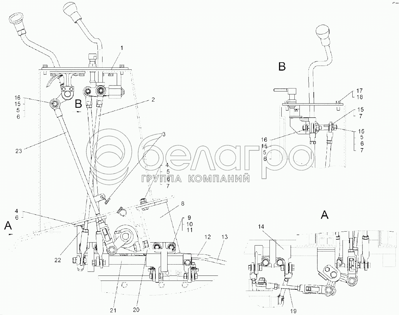 Каталог запасных частей к технике: ЧТЗ Бульдозер Б14. Установка мостиков управления
