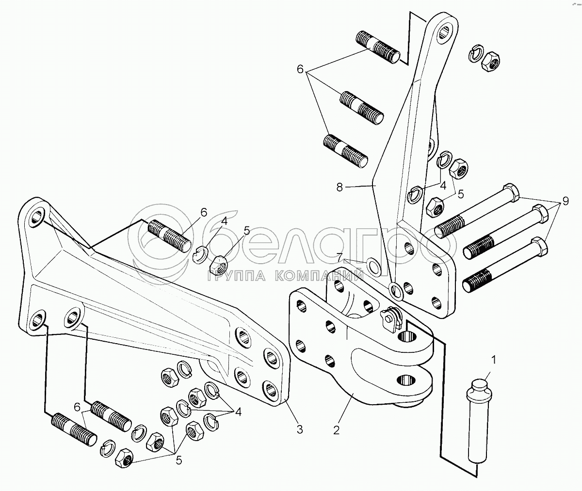 Каталог запасных частей к технике: ЧТЗ Бульдозер Б14. Установка прицепного устройства (жесткого типа)