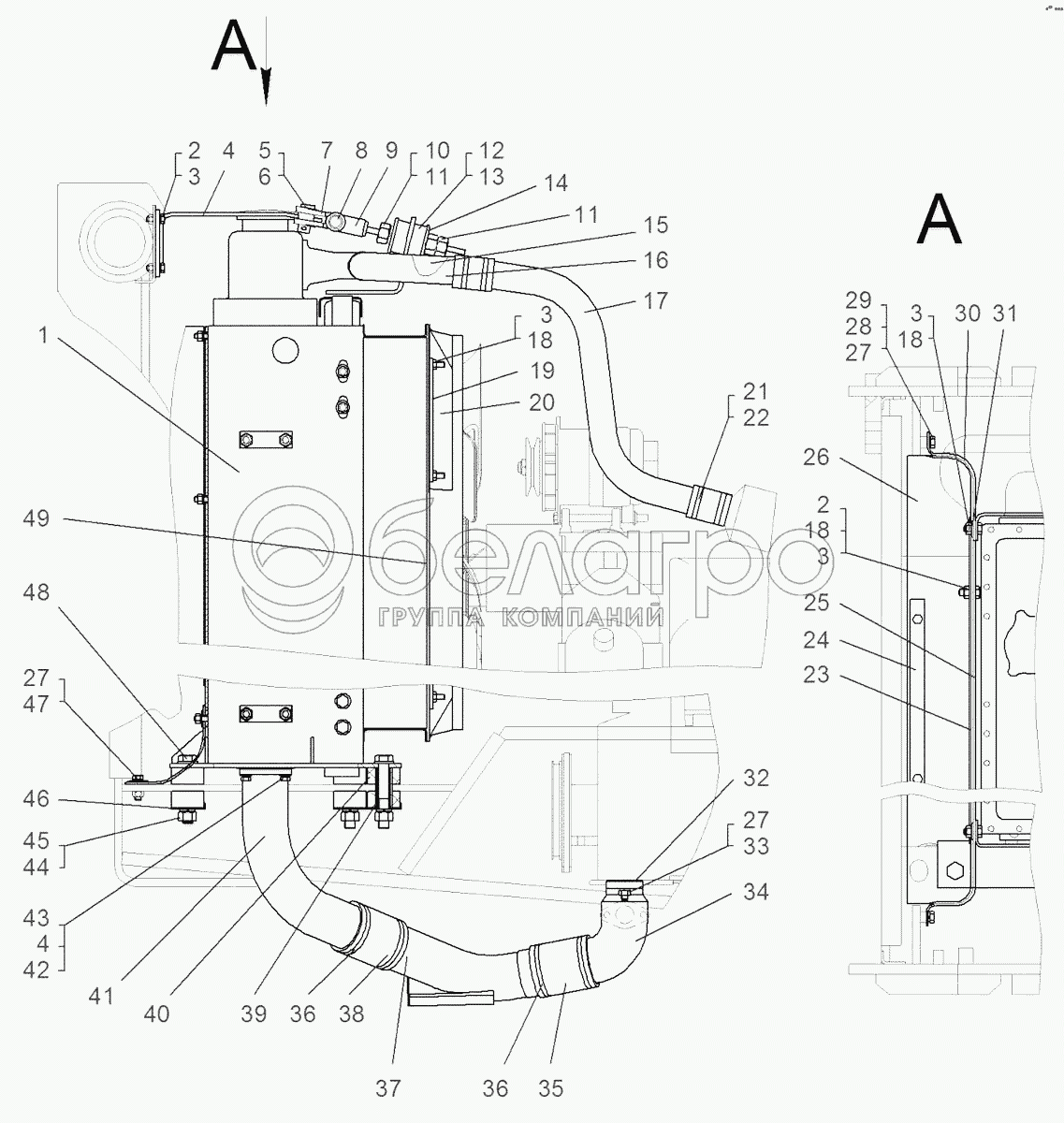 Каталог запасных частей к технике: ЧТЗ Бульдозер Б14. Установка радиаторов 114-301СП
