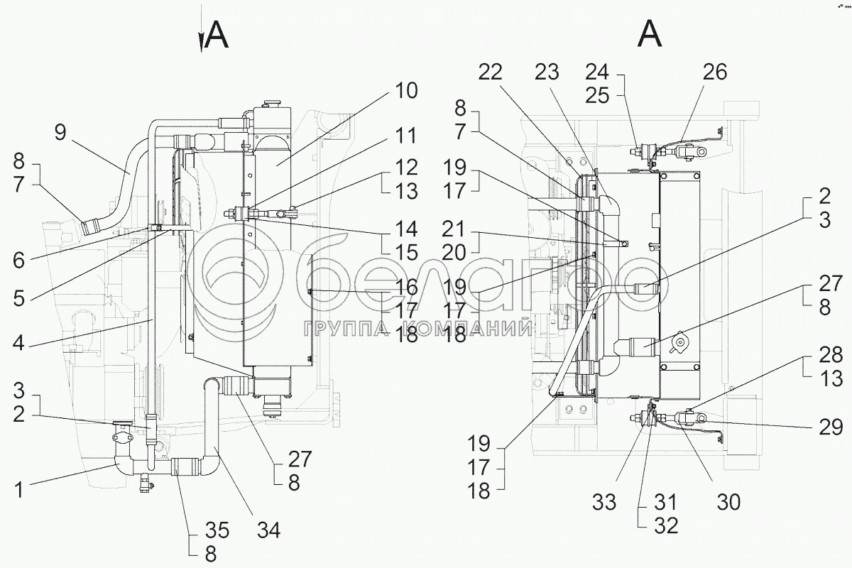 Каталог запасных частей к технике: ЧТЗ Бульдозер Б14. Установка радиаторов 114-303СП
