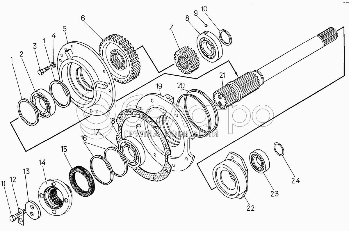 Каталог запасных частей к технике: ЧТЗ Бульдозер Б14. Вал с деталями