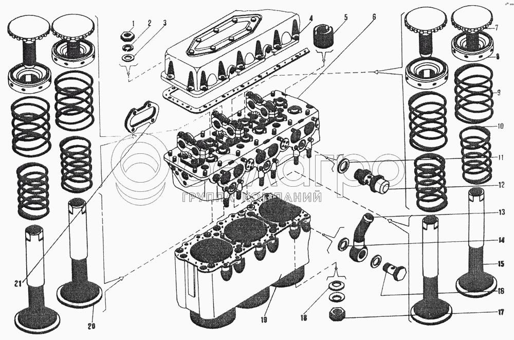 Каталог запасных частей к технике: ЧТЗ ДЭТ-250М2. Блок дизеля и газораспределение