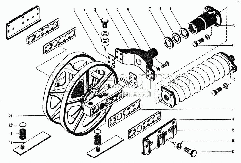 Каталог запасных частей к технике: ЧТЗ ДЭТ-250М2. Колесо направляющее с натяжным механизмом
