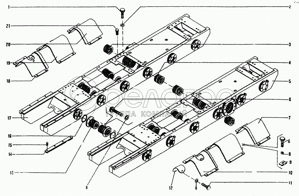 Каталог запасных частей к технике: ЧТЗ ДЭТ-250М2. Рамы тележек