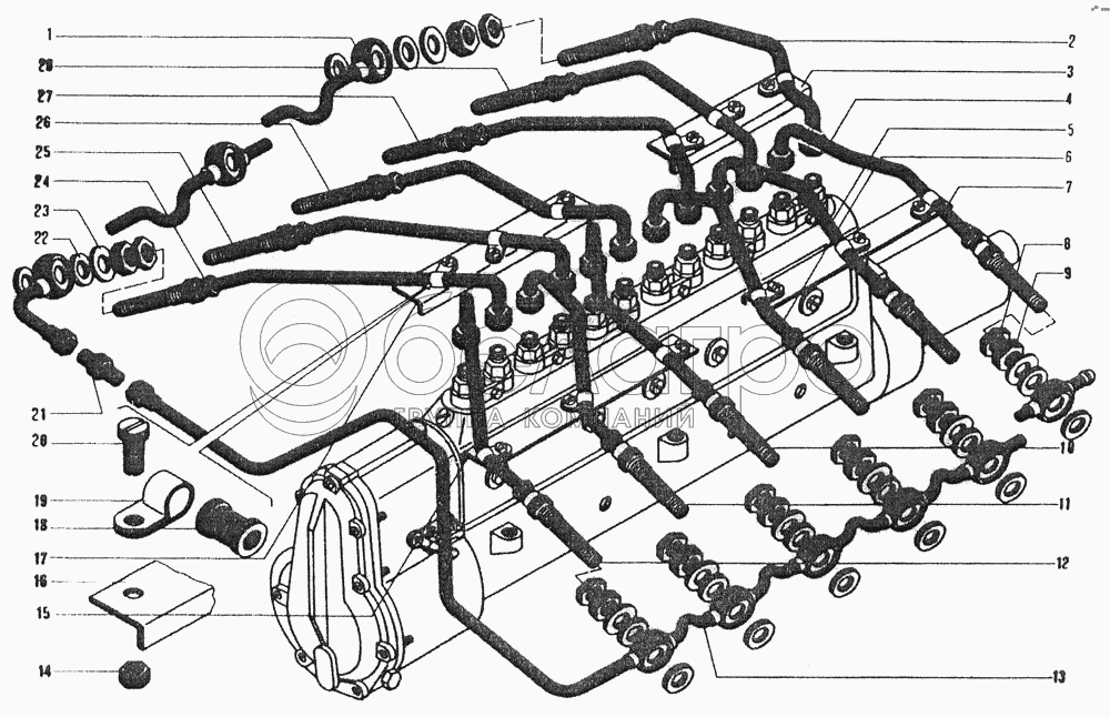 Каталог запасных частей к технике: ЧТЗ ДЭТ-250М2. Топливопровод высокого давления