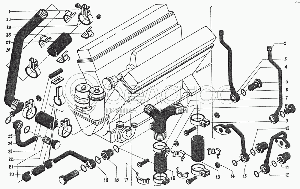 Каталог запасных частей к технике: ЧТЗ ДЭТ-250М2. Трубопровод водяной