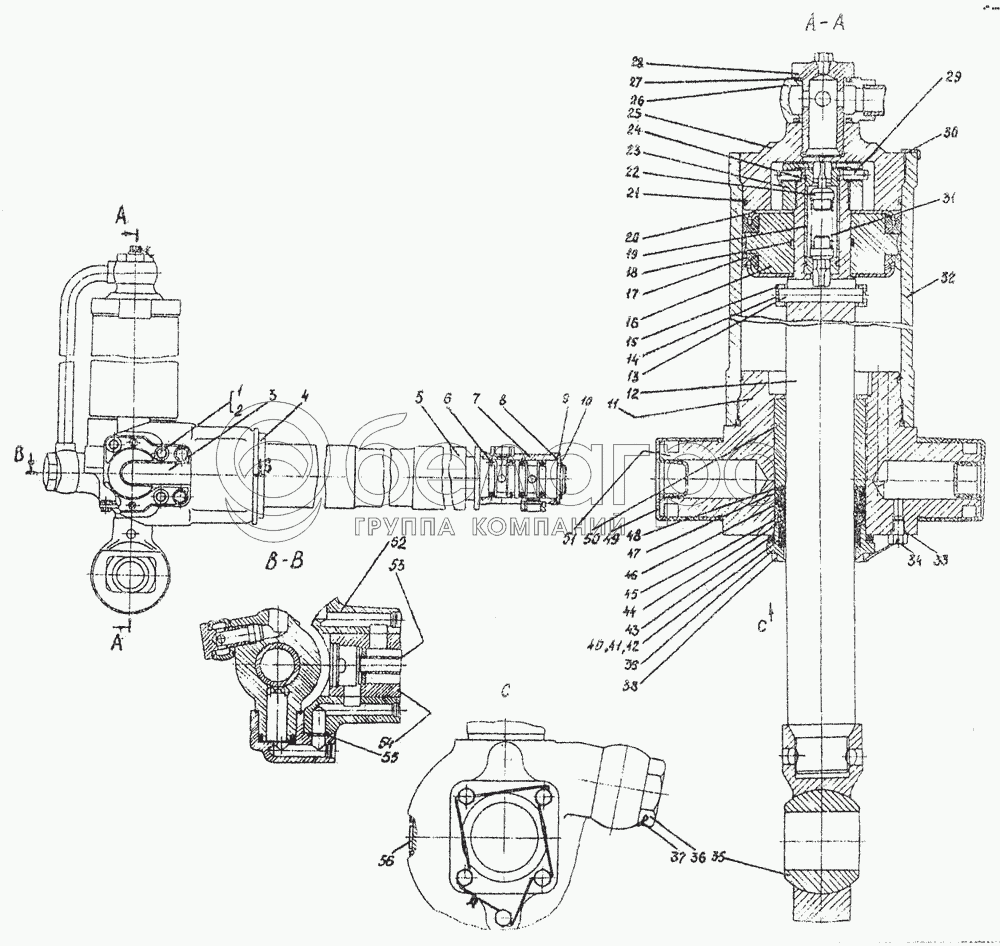 Каталог запасных частей к технике: ЧТЗ ДЭТ-250М2. Цилиндр гидравлический с кронштейном