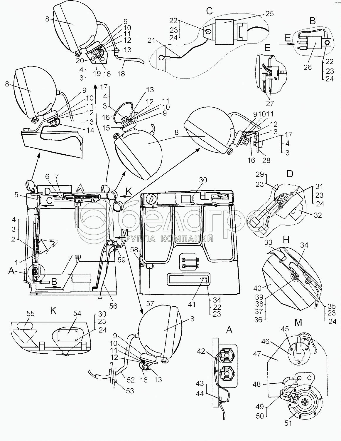 Каталог запасных частей к технике: ЧТЗ Кран ТР-20, ТР-12. Электрооборудование кабины