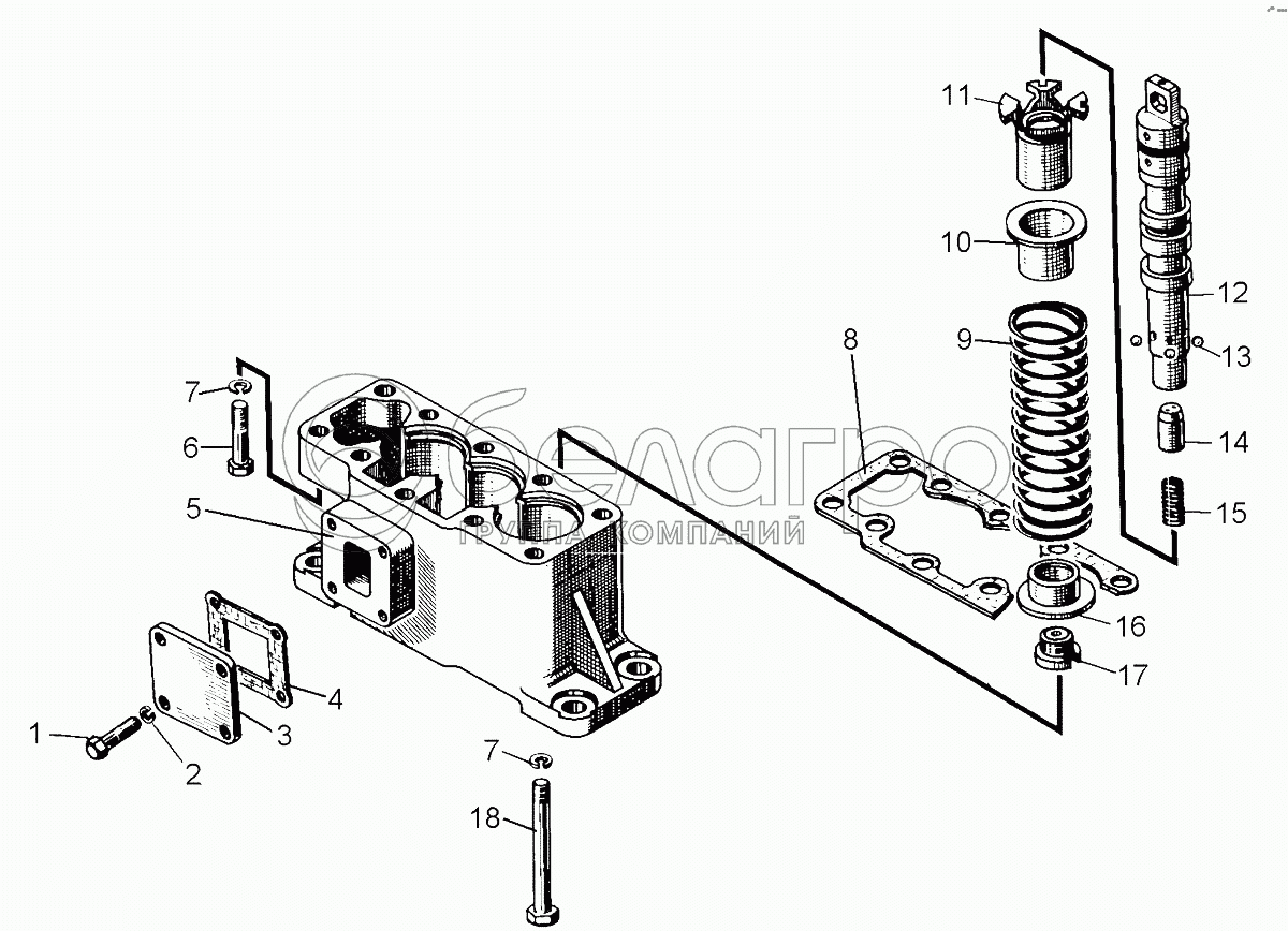 Каталог запасных частей к технике: ЧТЗ Кран ТР-20, ТР-12. Гидрораспределитель. Крышка нижняя