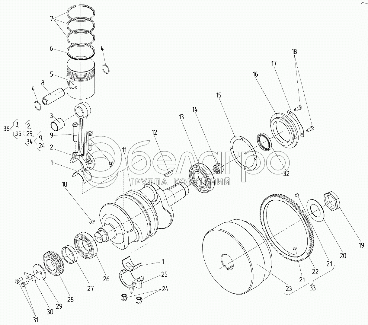Каталог запасных частей к технике: ЧТЗ Кран ТР-20, ТР-12. Кривошипно-шатунный механизм пускового агрегата