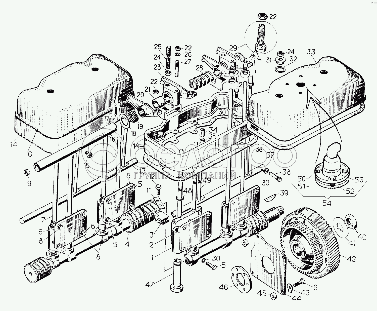 Каталог запасных частей к технике: ЧТЗ Кран ТР-20, ТР-12. Механизм газораспределения дизеля