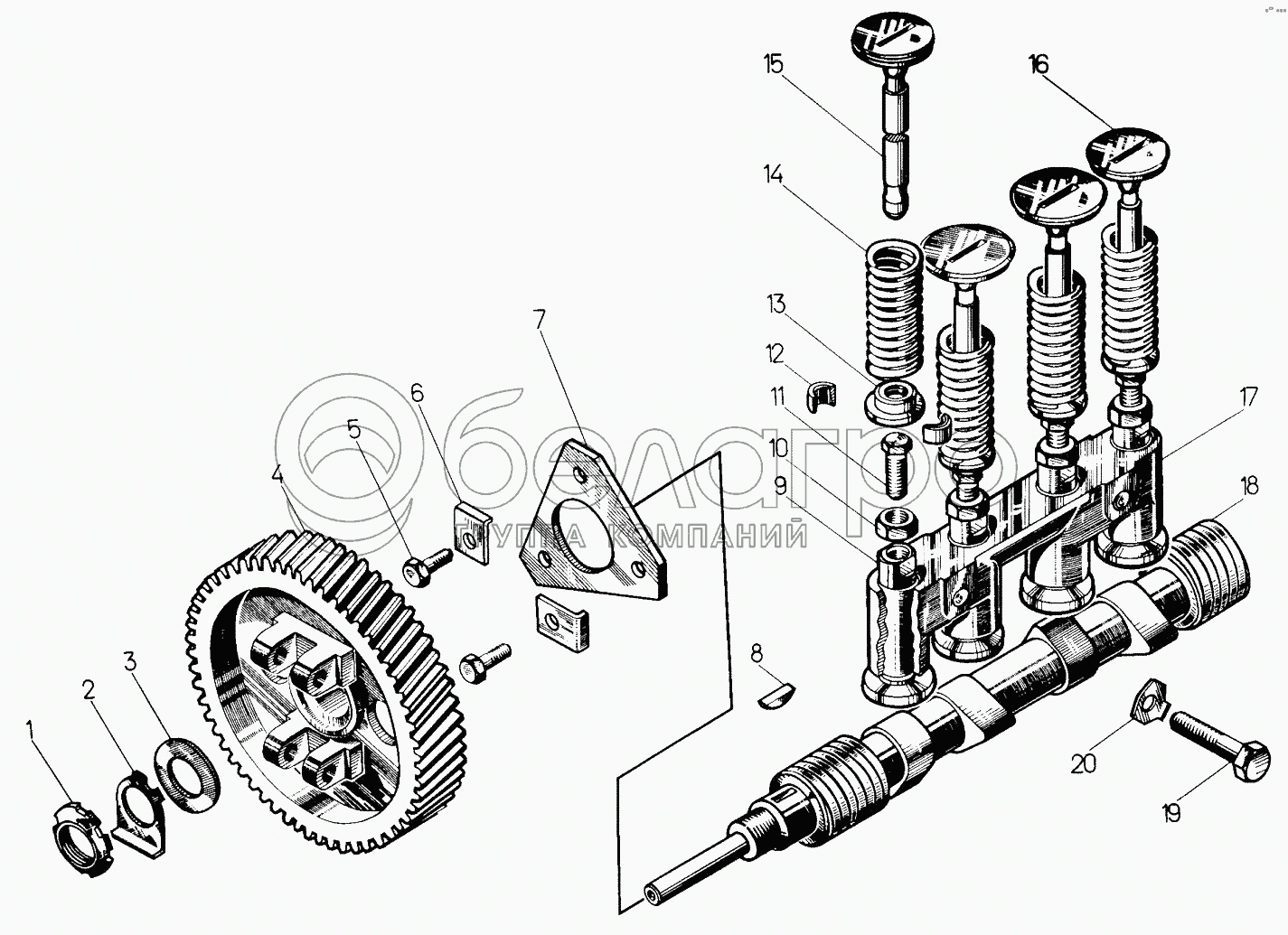 Каталог запасных частей к технике: ЧТЗ Кран ТР-20, ТР-12. Механизм газораспределения пускового агрегата