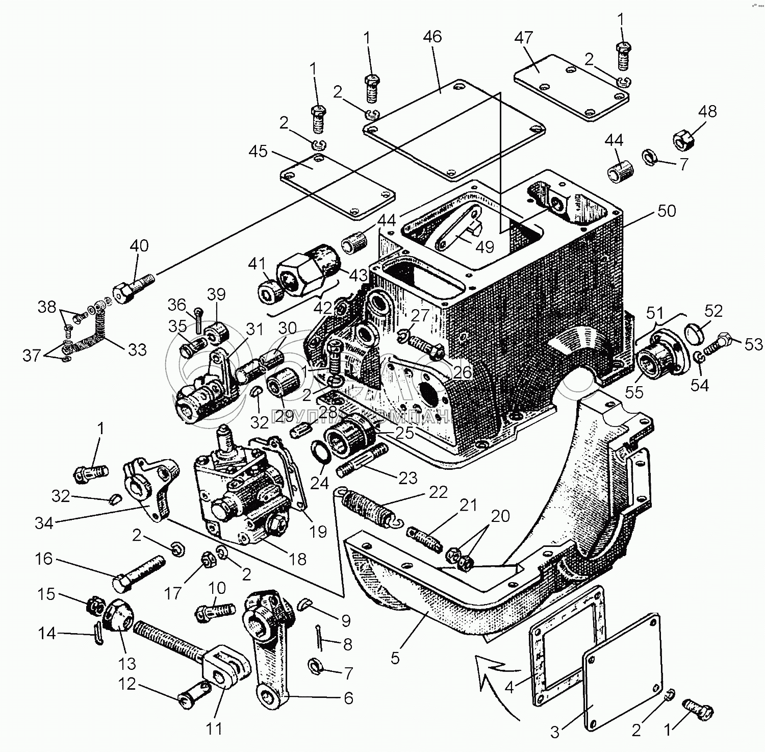 Каталог запасных частей к технике: ЧТЗ Кран ТР-20, ТР-12. Механизм управления муфтой сцепления