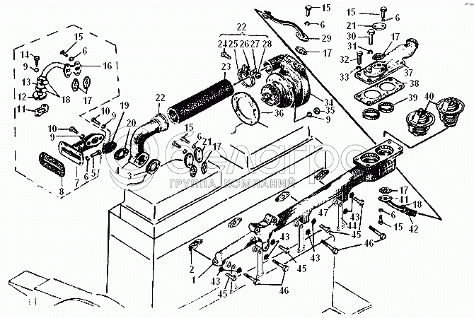 Каталог запасных частей к технике: ЧТЗ Кран ТР-20, ТР-12. Система охлаждения
