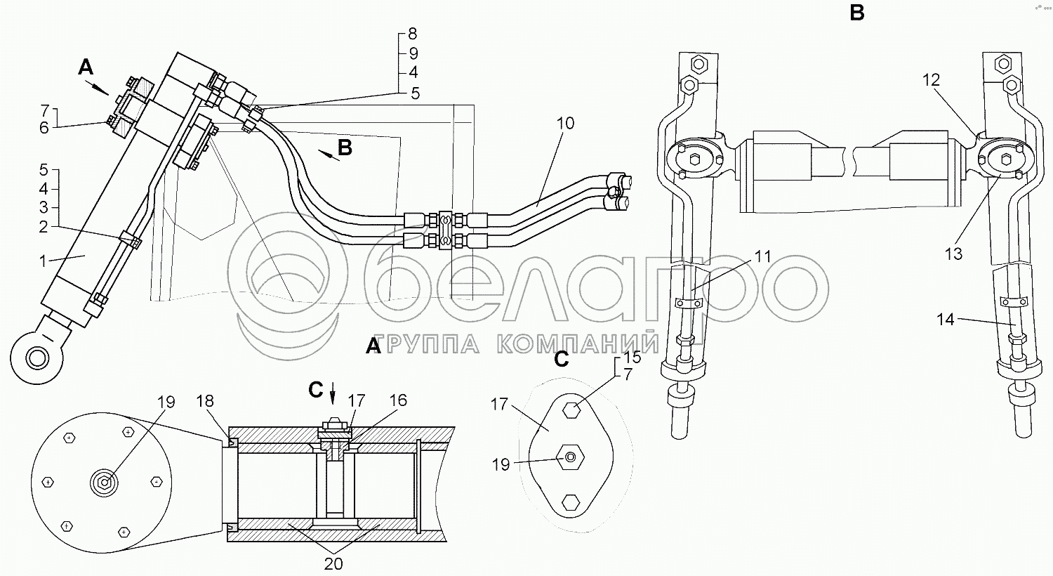 Каталог запасных частей к технике: ЧТЗ Кран ТР-20, ТР-12. Установка гидроцилиндров