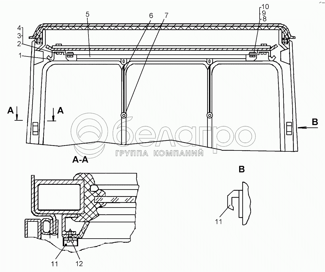 Каталог запасных частей к технике: ЧТЗ Кран ТР-20, ТР-12. Установка солнцезащитной шторки