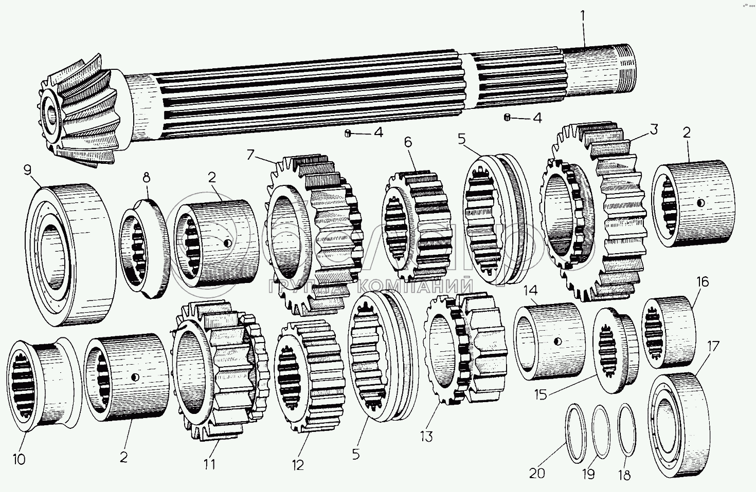 Каталог запасных частей к технике: ЧТЗ Кран ТР-20, ТР-12. Вал нижний