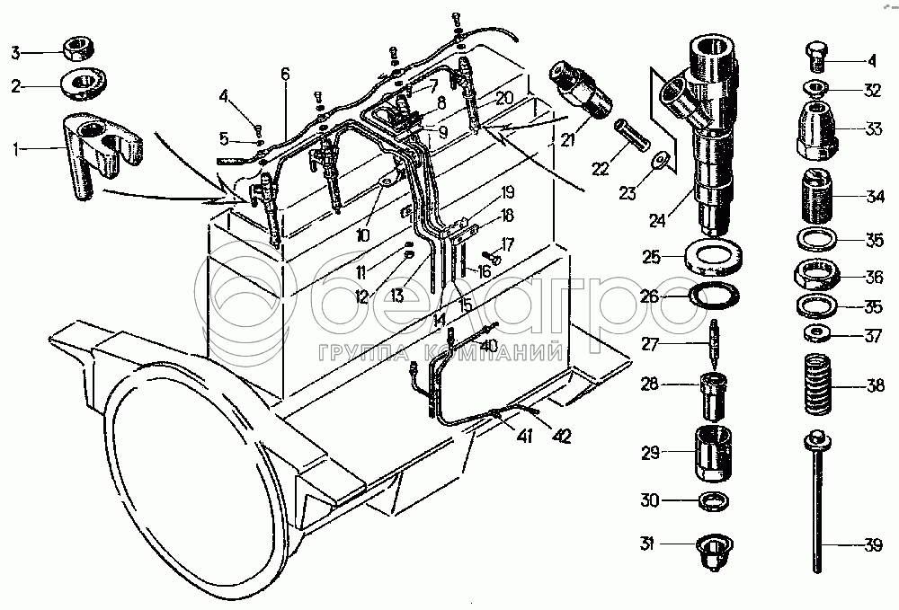 Каталог запасных частей к технике: ЧТЗ Т-10.02. Форсунки с трубками высокого давления