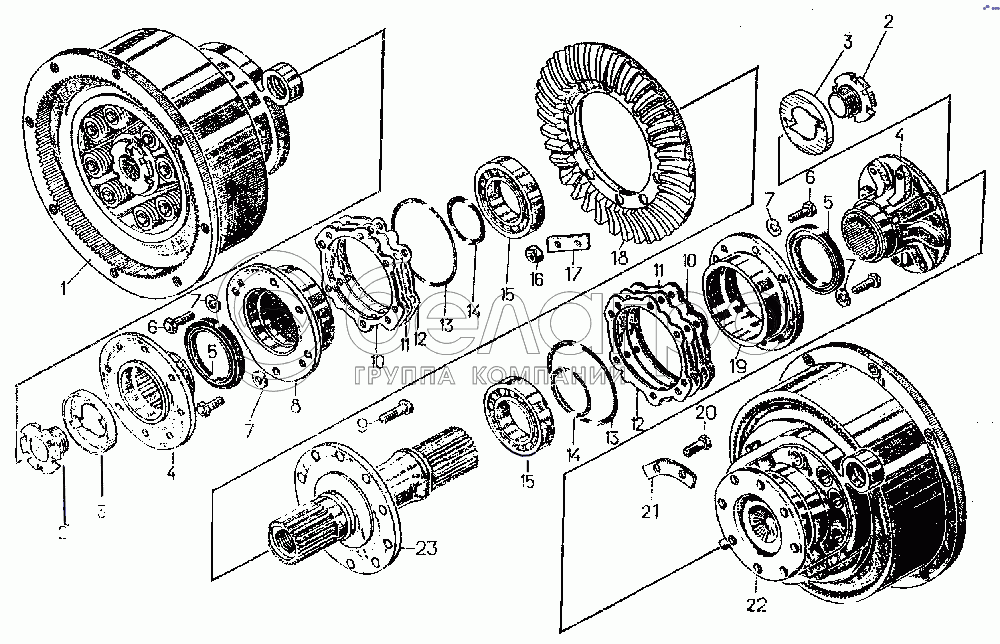 Каталог запасных частей к технике: ЧТЗ Т-10.02. Главная передача с бортовыми фрикционами