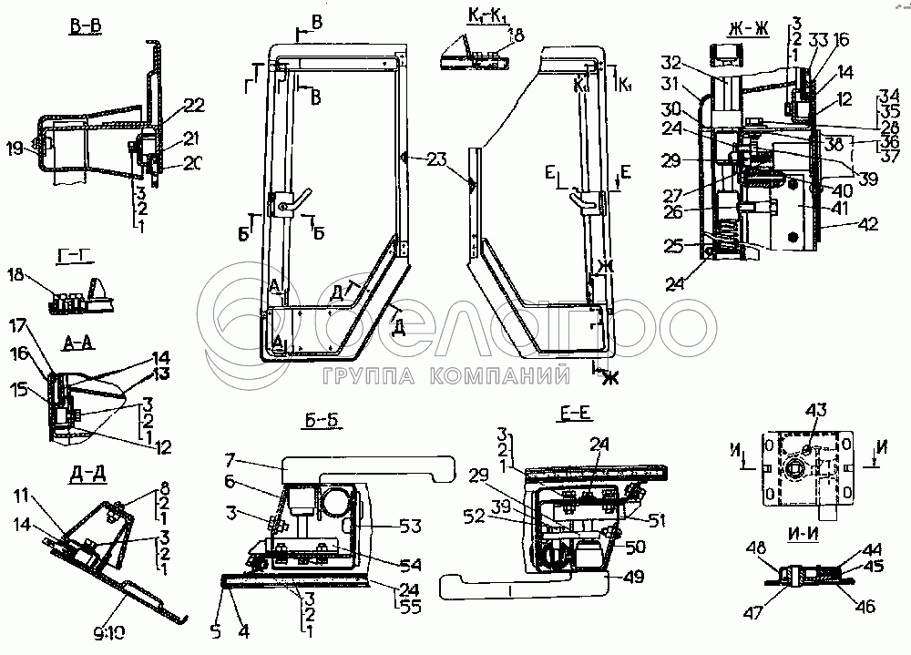 Каталог запасных частей к технике: ЧТЗ Т-10.02. Кабина. Двери кабины