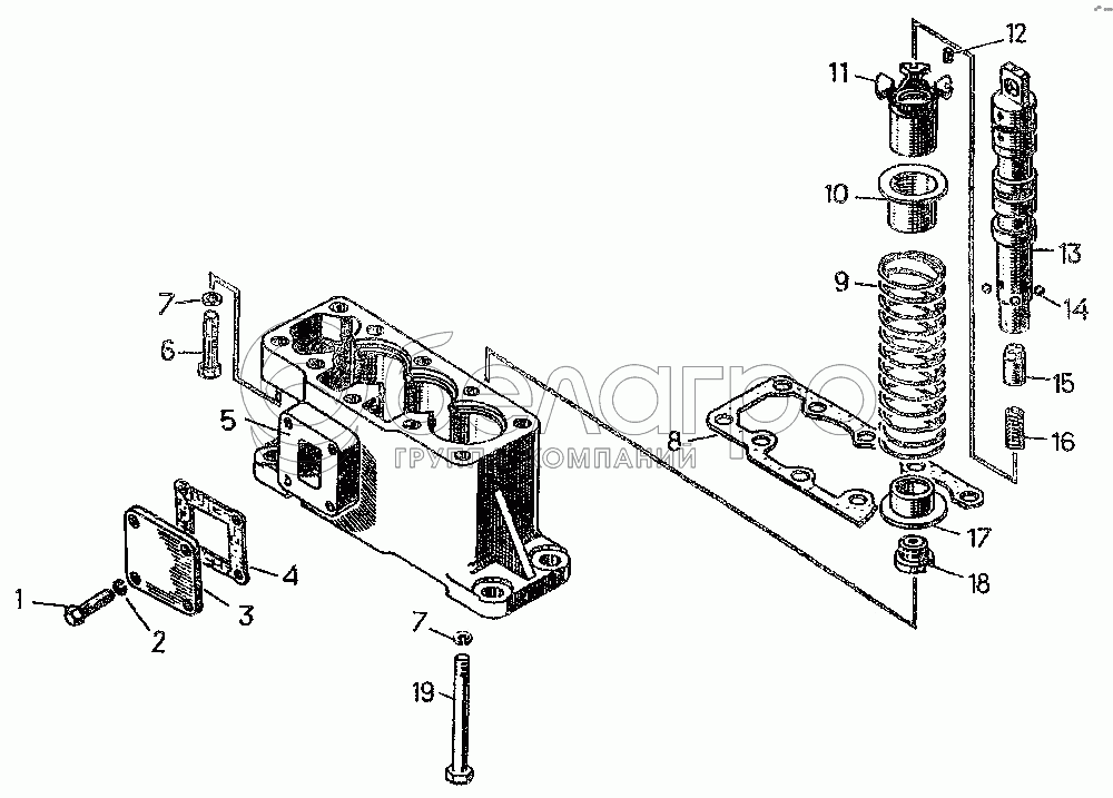 Каталог запасных частей к технике: ЧТЗ Т-10.02. Крышка нижняя с деталями и золотник