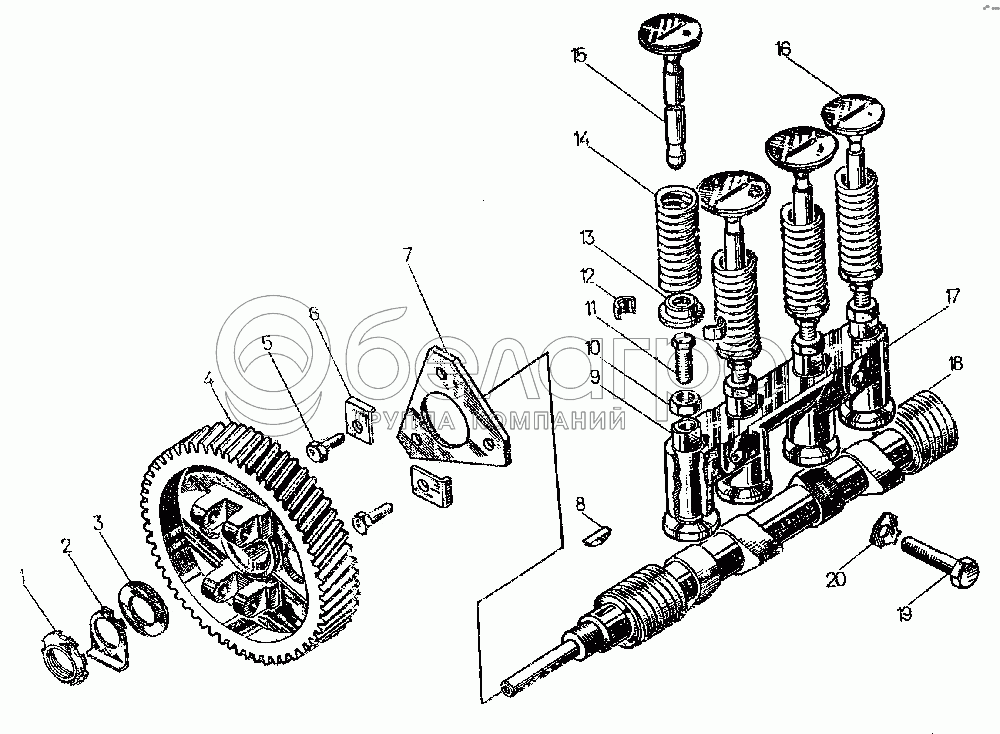 Каталог запасных частей к технике: ЧТЗ Т-10.02. Механизм газораспределения пускового двигателя