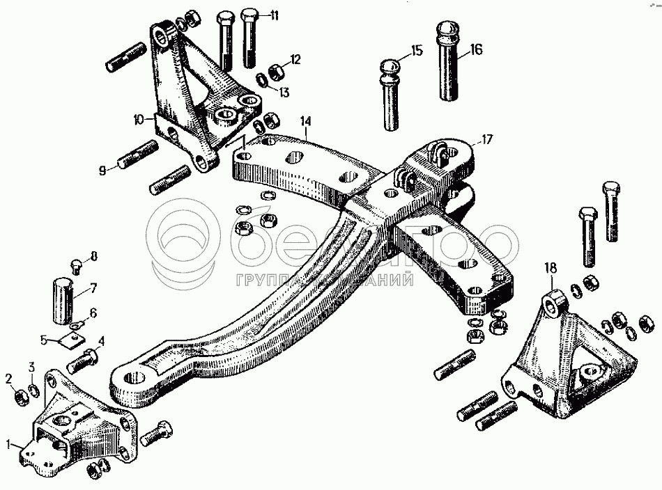 Каталог запасных частей к технике: ЧТЗ Т-10.02. Прицепное устройство маятникового типа