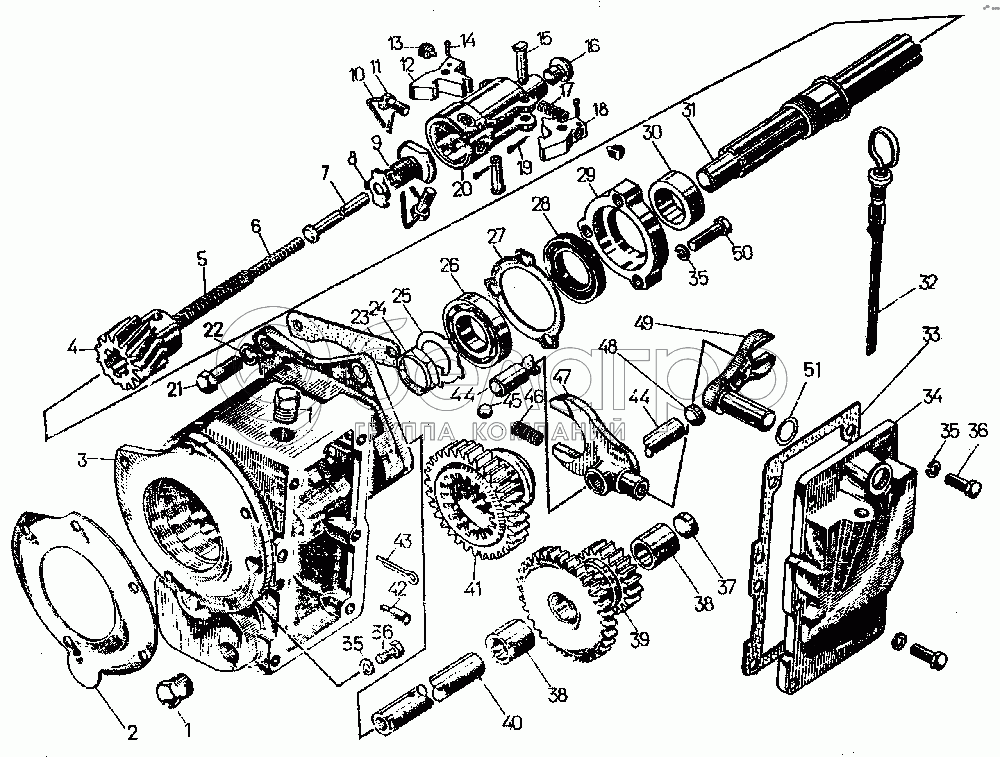 Каталог запасных частей к технике: ЧТЗ Т-10.02. Редуктор пускового двигателя