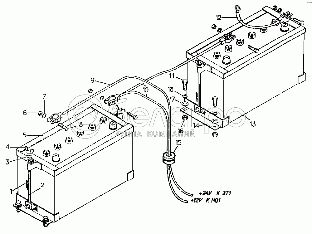 Каталог запасных частей к технике: ЧТЗ Т-10.02. Установка аккумуляторных батарей