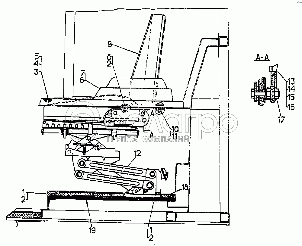 Каталог запасных частей к технике: ЧТЗ Т-10.02. Установка сиденья