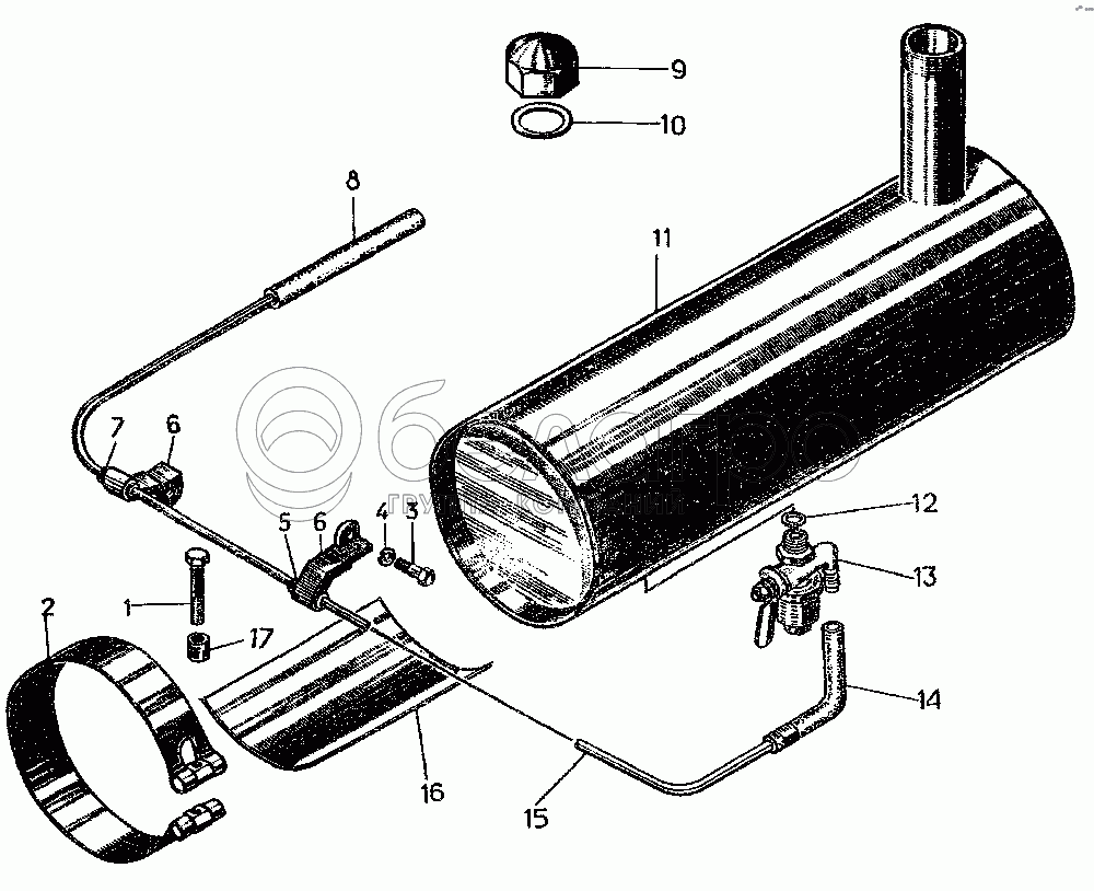 Каталог запасных частей к технике: ЧТЗ Т-10.02. Установка топливного бака пускового двигателя