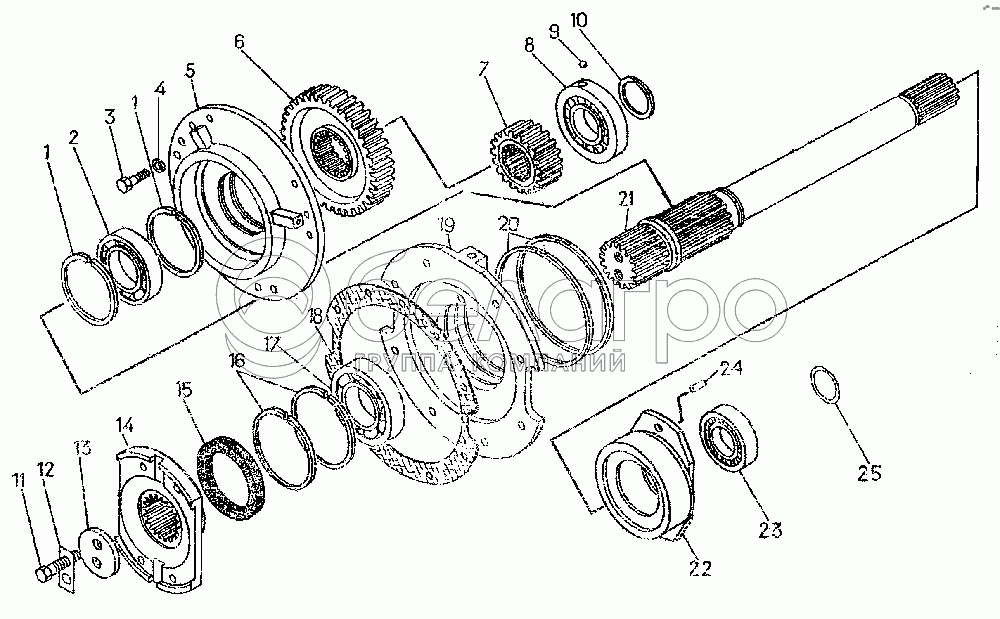 Каталог запасных частей к технике: ЧТЗ Т-10.02. Вал с деталями