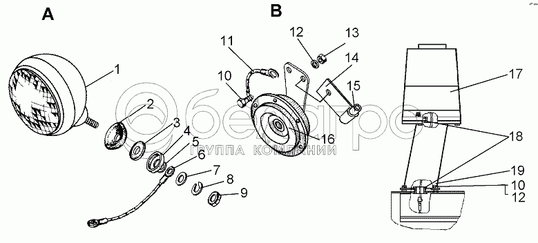 Каталог запасных частей к технике: ЧТЗ Т-10М. Электрооборудование трактора (с гидромеханической трансмиссией)