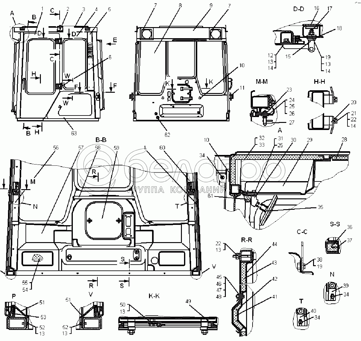 Каталог запасных частей к технике: ЧТЗ Т-10М. Кабина (для трактора с гидромеханической трансмиссией)
