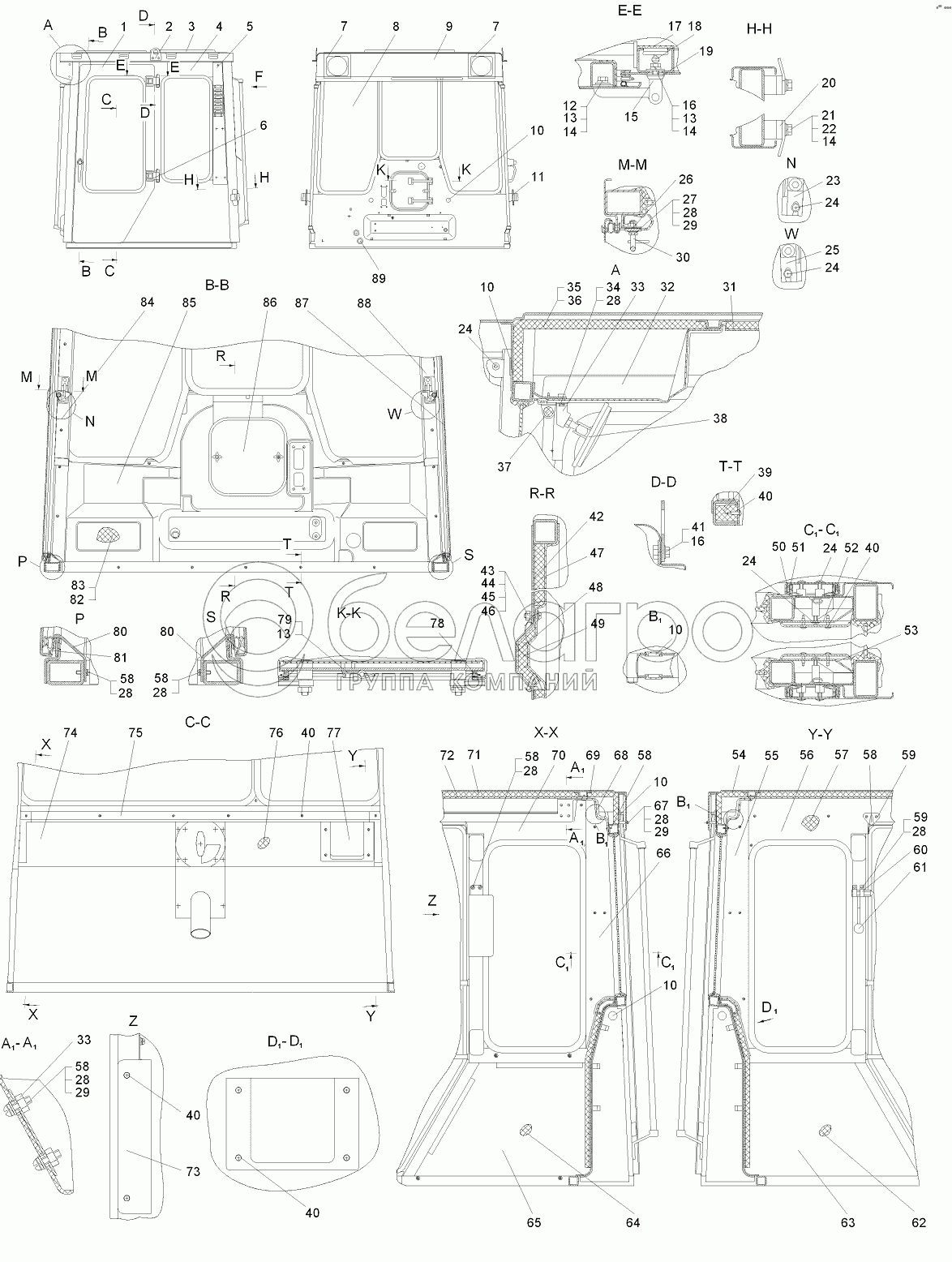Каталог запасных частей к технике: ЧТЗ Т-10М. Кабина (для трактора с механической трансмиссией)