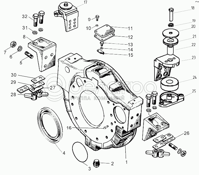 Каталог запасных частей к технике: ЧТЗ Т-10М. Кожух маховика дизеля