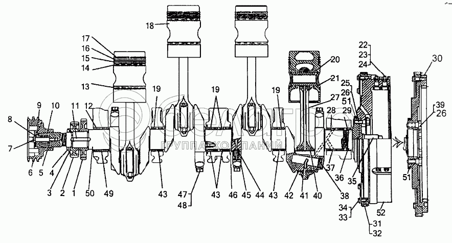 Каталог запасных частей к технике: ЧТЗ Т-10М. Кривошипно-шатунный механизм дизеля