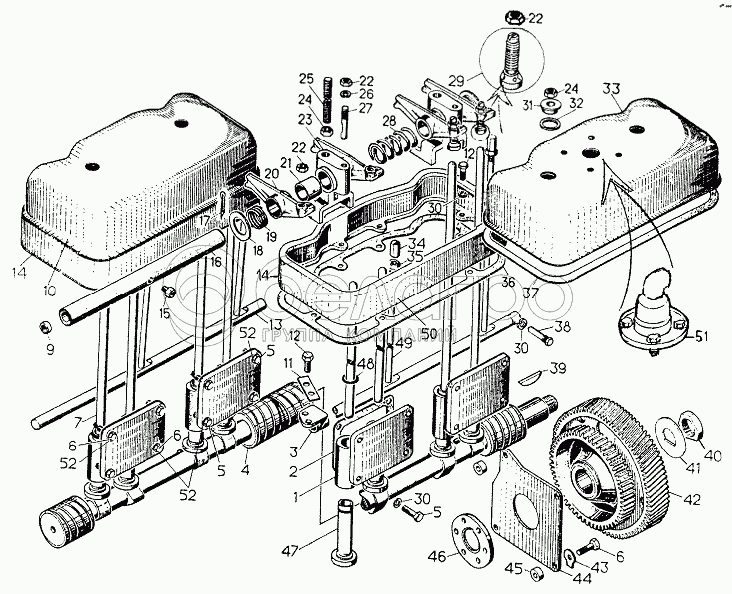 Каталог запасных частей к технике: ЧТЗ Т-10М. Механизм газораспределения дизеля