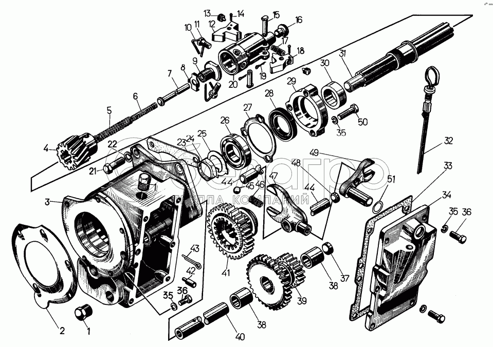 Каталог запасных частей к технике: ЧТЗ Т-10М. Редуктор пускового двигателя