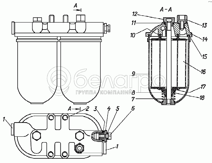 Каталог запасных частей к технике: ЧТЗ Т-10М. Топливный фильтр тонкой очистки