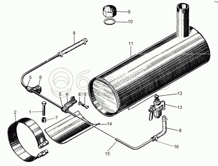 Каталог запасных частей к технике: ЧТЗ Т-10М. Установка бензобачка пускового двигателя
